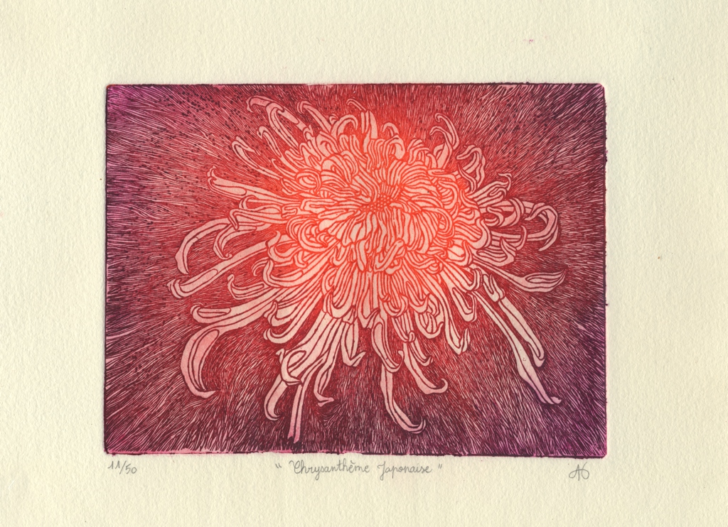 Image précédenteImage suivante chrysantheme japonaise alice heit-aliceheit-com “Chrysanthème japonaise”, eau forte, Alice Heit 2016. Liked it? Take a second to support friedadorn on Patreon!Partager :Cliquez pour partager sur Facebook(ouvre dans une nouvelle fenêtre)Cliquez pour partager sur Pinterest(ouvre dans une nouvelle fenêtre)Cliquer pour envoyer un lien par e-mail à un ami(ouvre dans une nouvelle fenêtre)