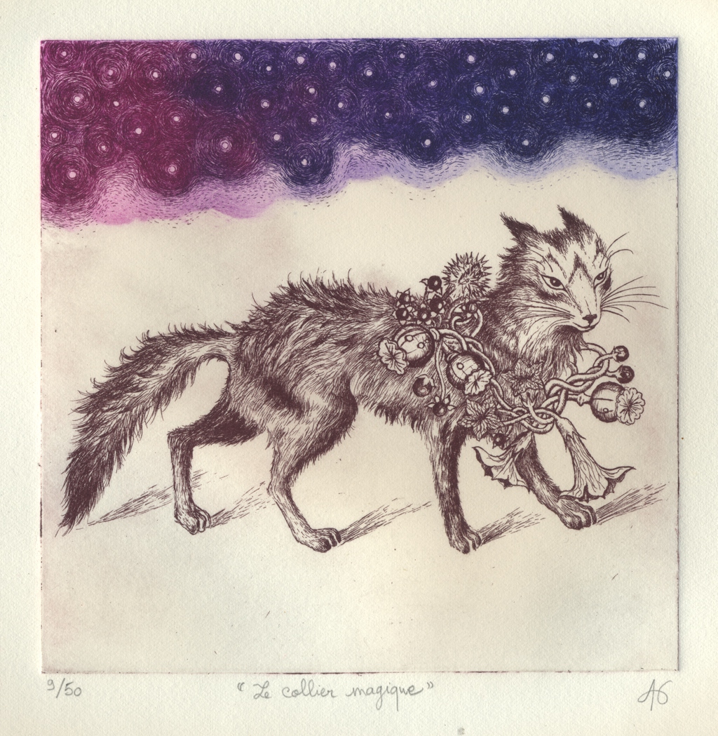 “Le collier magique”, eau forte, Alice Heit 2016.